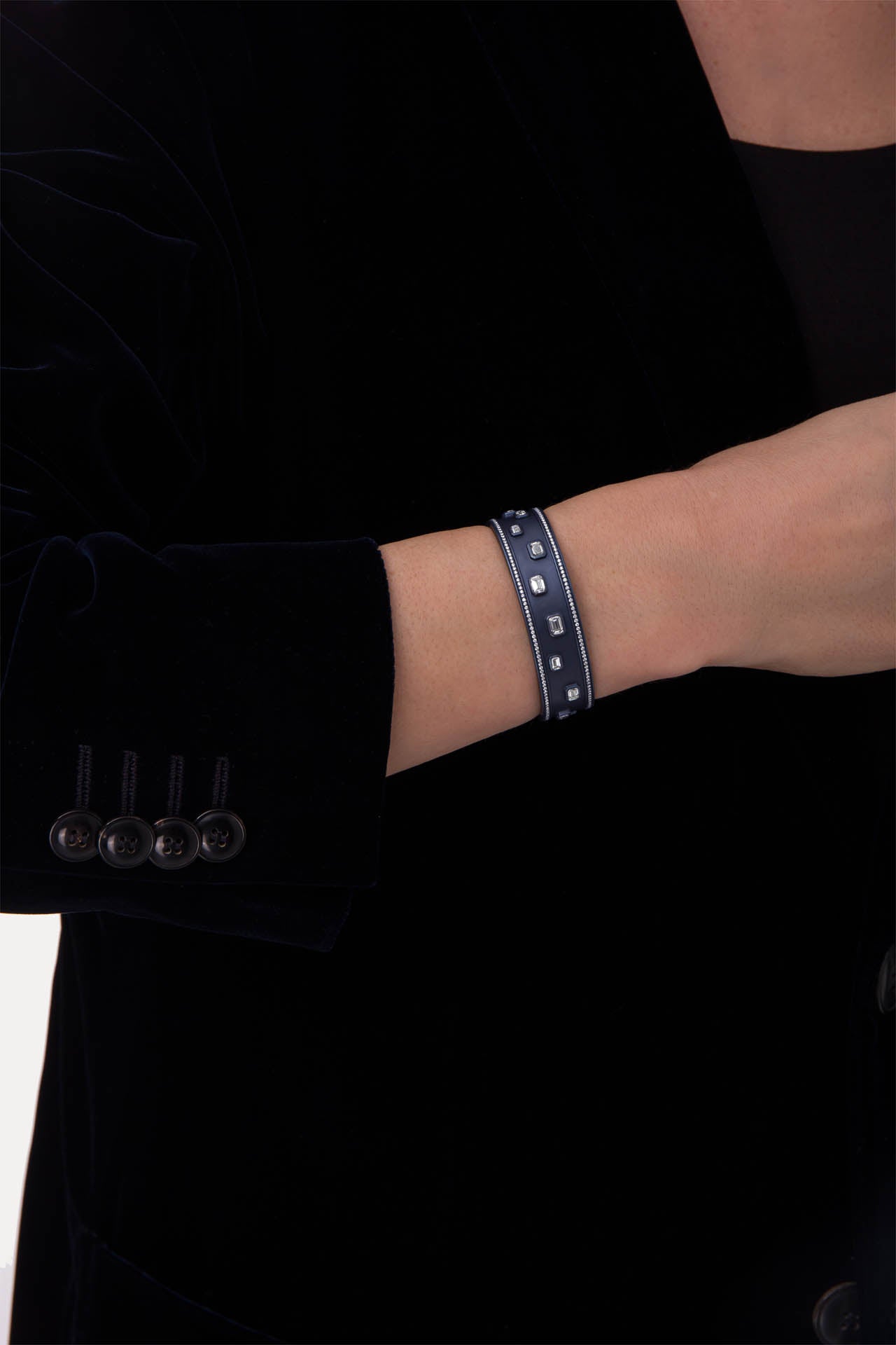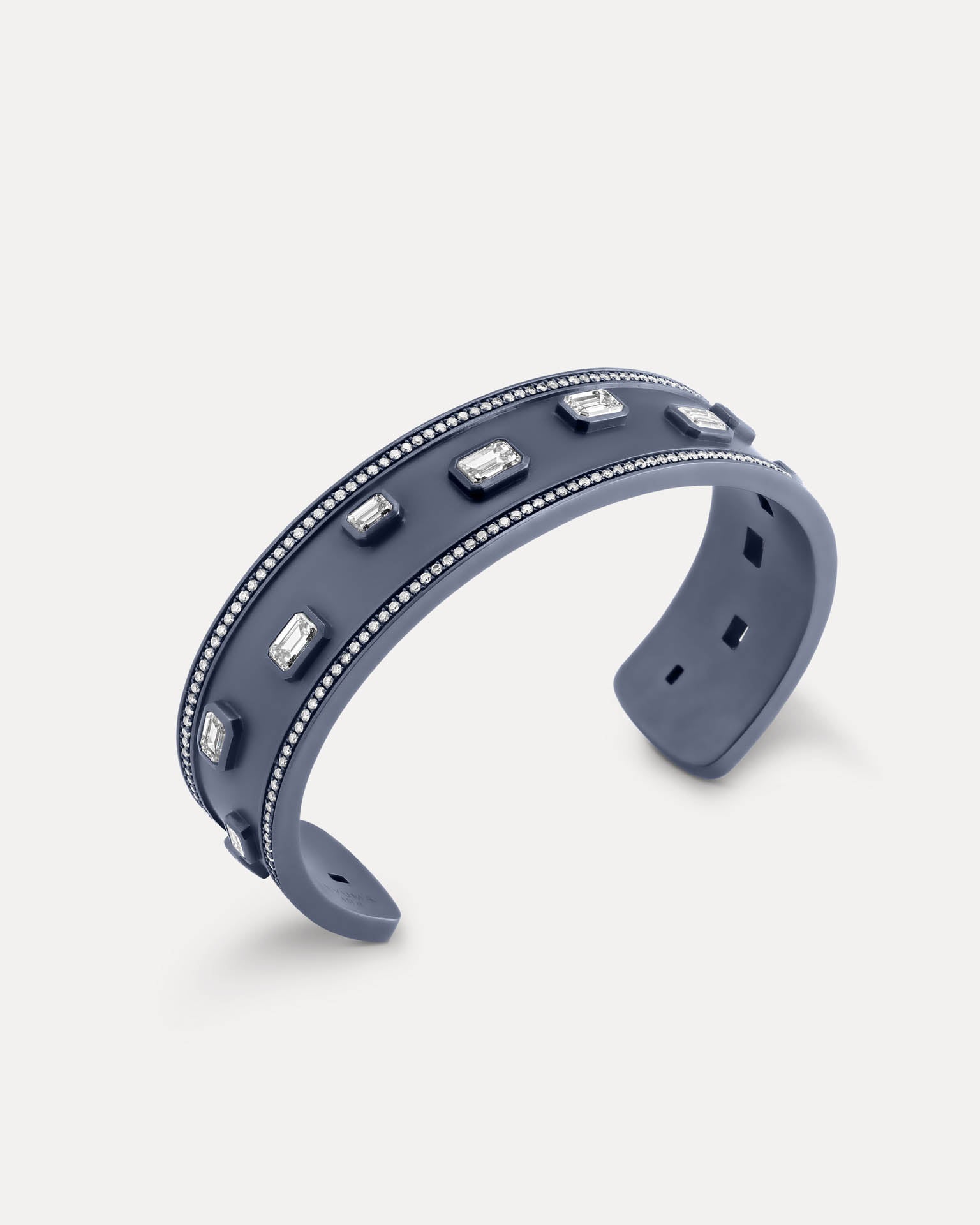 The Midnight Blue Titanium L’Armure Cuff – Classic features a deep satin finish that emphasises the purity of its architectural form, expressed through a wider silhouette. Hand-set natural diamonds introduce precise points of light, creating a refined balance between strength and restraint.