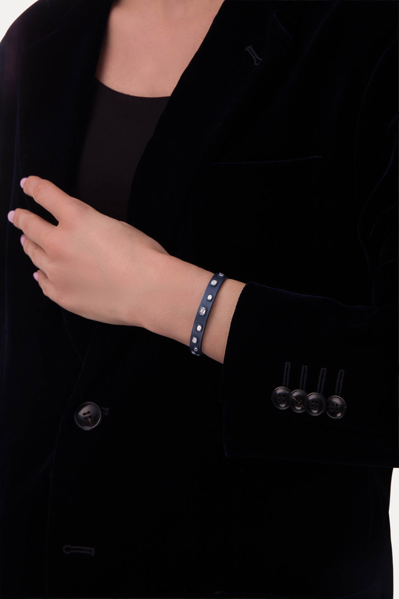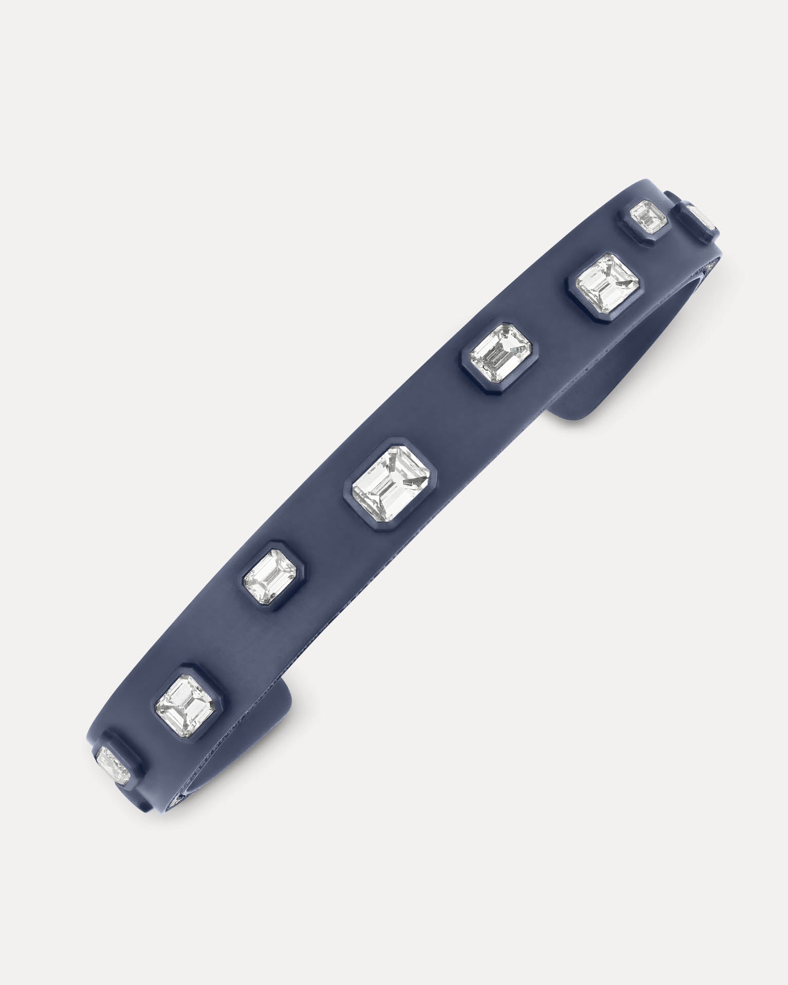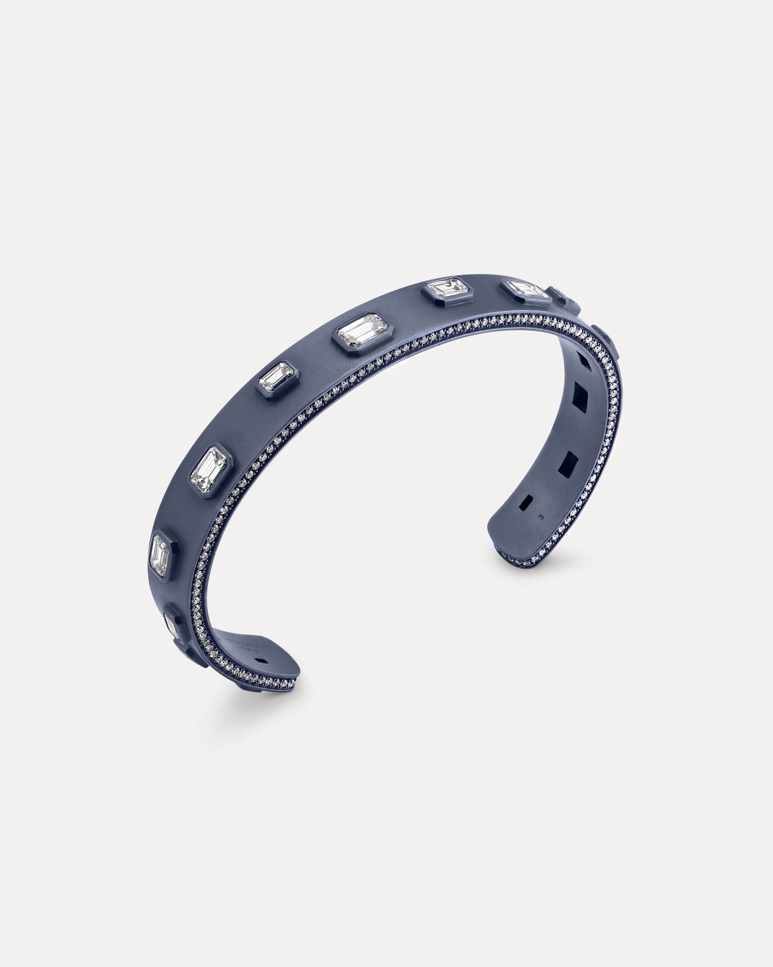 The Midnight Blue Titanium L’Armure Cuff combines a deep satin finish with a slim architectural silhouette. Hand-set natural diamonds add a controlled, understated brilliance to this lightweight yet sculptural cuff, designed to be worn alone or stacked.