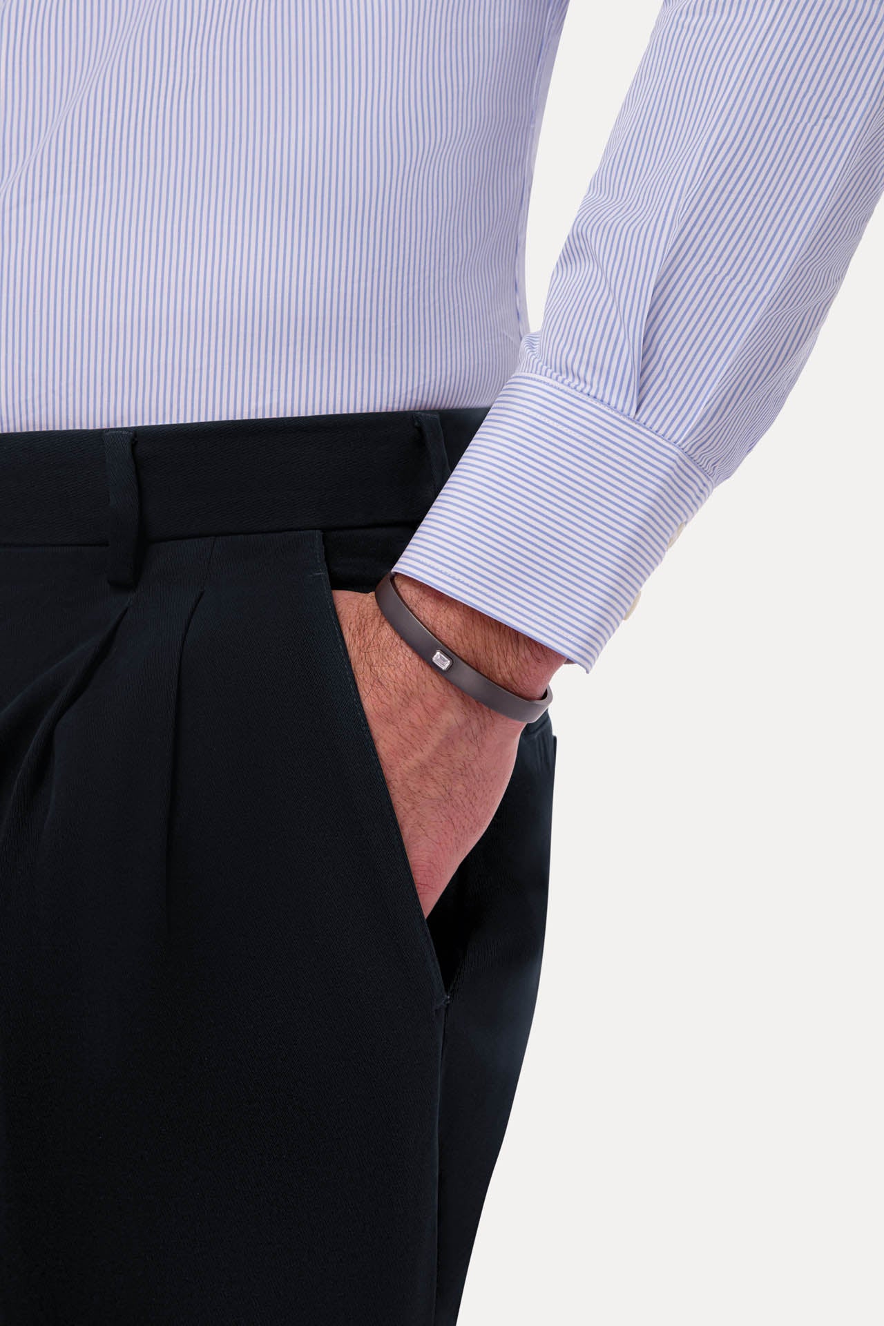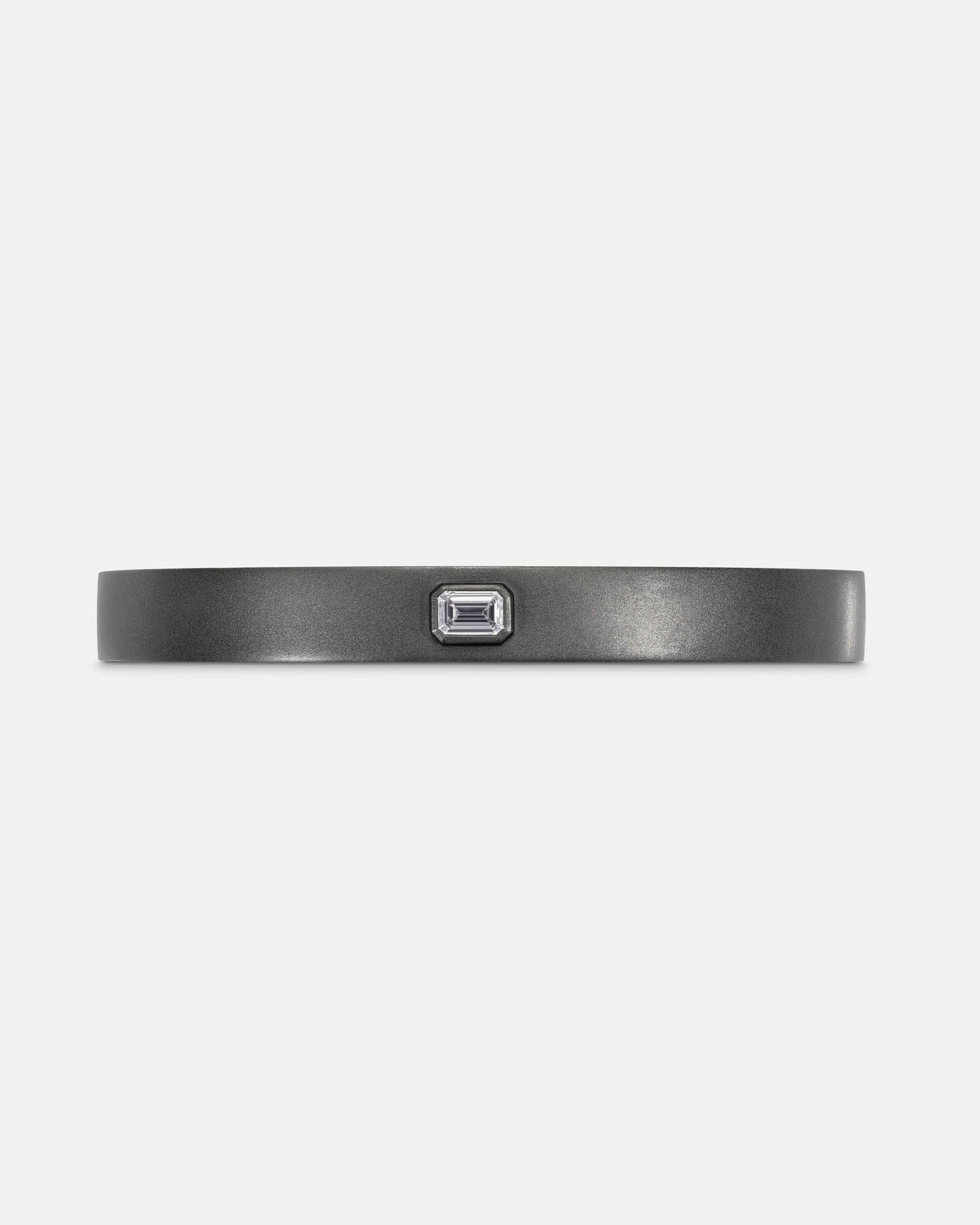 The Dark Gray Titanium L’Armure Cuff – Solo features a muted satin finish that highlights the purity of its architectural line. Designed with men in mind, a single hand-set natural diamond adds subtle contrast to this minimal sculptural cuff, balancing strength and restraint.